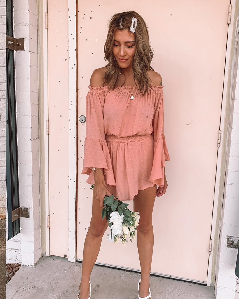 One for the true romantics, our Scarlett Dress in Blush is ultra feminine. With a relaxed fit, off the shoulder neckline and bell sleeve this dress is easy to wear. Dress is up or down, wear casually with sandals and layered pendants or pair with a heels and statement earring for something more special.