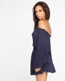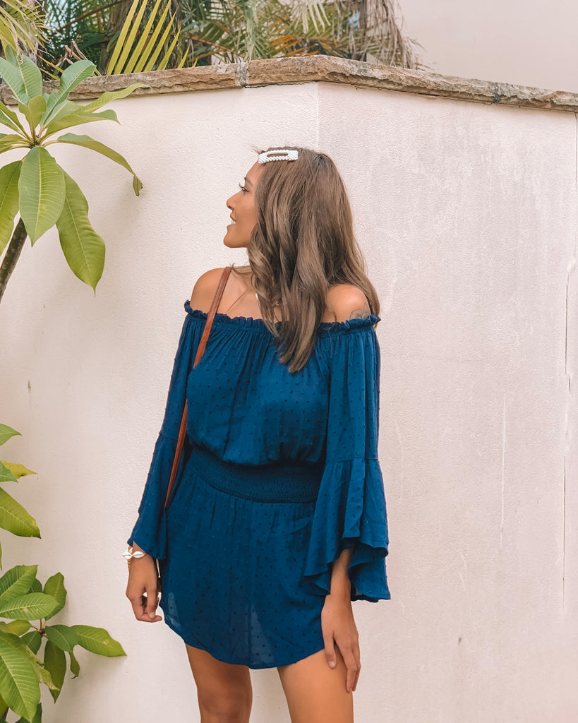 One for the true romantics, our Scarlett Dress in Navy is ultra feminine. With a relaxed fit, off the shoulder neckline and bell sleeve this dress is easy to wear. Dress is up or down, wear casually with sandals and layered pendants or pair with a heels and statement earring for something more special.