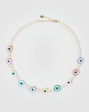 Shop our Angeline Choker in Pearl Multi for the ultimate laid-back look this Summer. Featuring multicoloured evil eye and pearls this item is the perfect piece for a sunny day out, pair with our Angeline Bracelet.