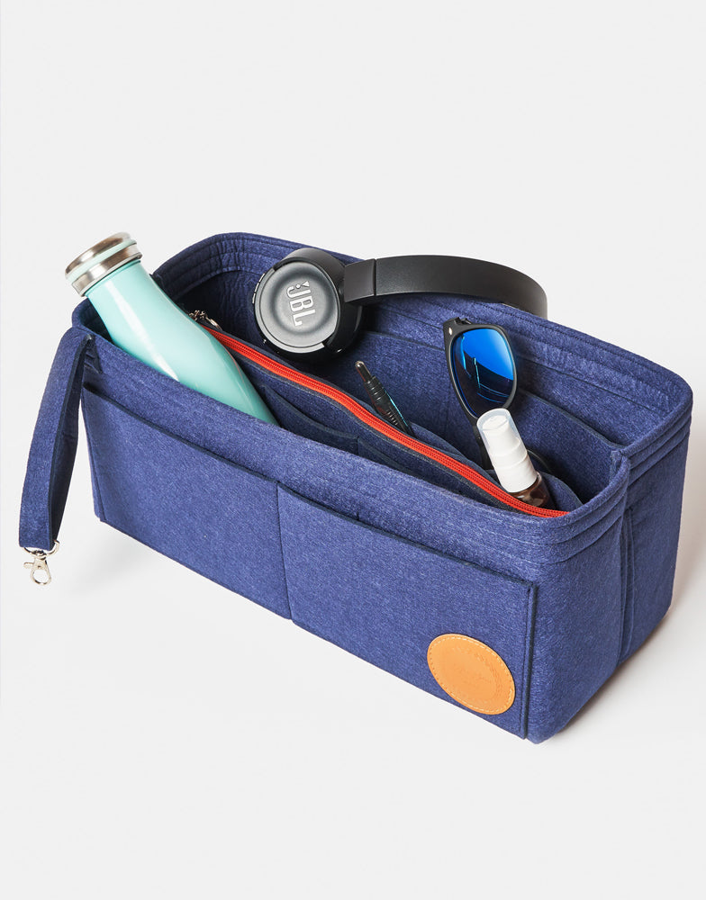 The Jasmine Bag Organiser in Navy is the essential item for those wanting to organise their life. Easily move from one hand bag to another, by simply moving your organiser. With spacious interior and exterior pockets, a zip pocket and removable centre pocket divider there is a spot for everything you need to be neatly organised. Carry all the things you need and enjoy the peace of mind of a well organised hand bag. Perfect for work, as a nappy bag organiser or for day to day use.