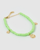 Shop our Ellie Bracelet in Green Gold for the ultimate laid-back look this Summer. Featuring Gold Smiley faces this item is the perfect piece for a sunny day out, paired with the matching choker.
