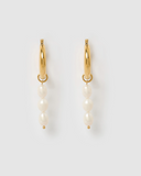 The Estelle Hoop Earrings in Gold feature a Freshwater 3 tiered Pearl Drop on an stunning Gold Hoop. These stunning earrings will be the perfect staple to wear any time of year. From simple day outfits, to stylish night looks, these elegant gold pearl drop earrings will become your go to accessory