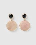 The Chelsea Earrings in Rose Quartz Gold are a large statement earrings fit for any occasion. Featuring black onyx studs finished with rose quartz coloured crystal circular discs plated in gold. Add these stunning earrings to your evening look and you'll no doubt be receiving a fair few complements.