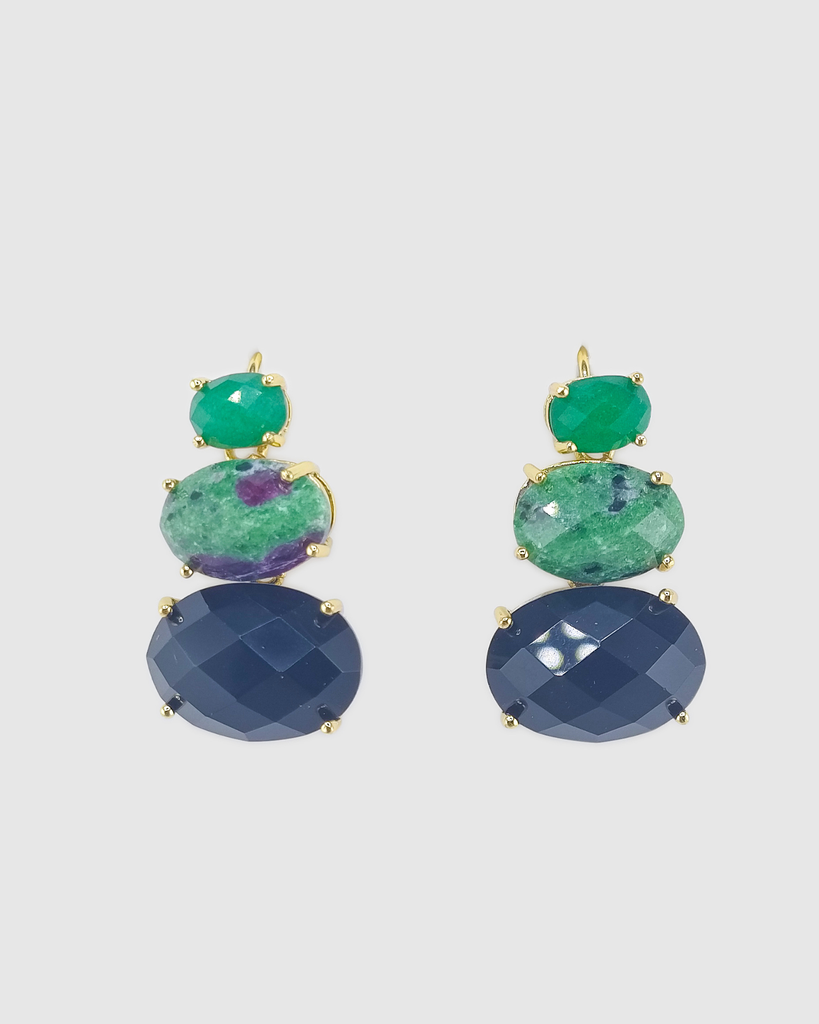 Make an elegant statement with the Cleo Gemstone Multi Stud Earrings, a refined yet eye-catching design crafted to elevate both everyday and occasion looks. Featuring a graceful three-tiered drop, these handcrafted stud earrings showcase a striking trio of Green Jade, Unakite and Black Obsidian gemstones, arranged vertically to create depth, movement, and a beautifully balanced silhouette. The rich green tones bring a fresh, sophisticated edge to this timeless design.