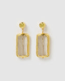 The Rose Earrings in Clear Quartz Gold are effortless and stunning. With a natural stone, set in gold plated hardware; these earrings will take any outfit to the next level.