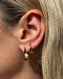 The Daphne Mini Huggie Earrings in Gold is a unique design. Featuring a double structural design, this petite detailing can be worn everyday and paired with similar style huggies for a layered textural look.