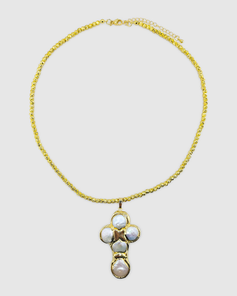 Embrace luxe island styling this season with our Thalora Necklace in Pearl. Featuring a delicate linked chain, and stunning freshwater pearls enclosed in 18k gold plating, this necklace will pair perfectly with with any outfit for summer.