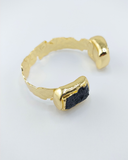 Crafted from premium 18K gold plating, this adjustable cuff is perfect for stacking with finer pieces or wearing solo as a statement accessory. The raw, organic shape of the chunky gemstones adds a unique, earthy edge to your look — ideal for those who love boho luxe jewellery with a contemporary twist.