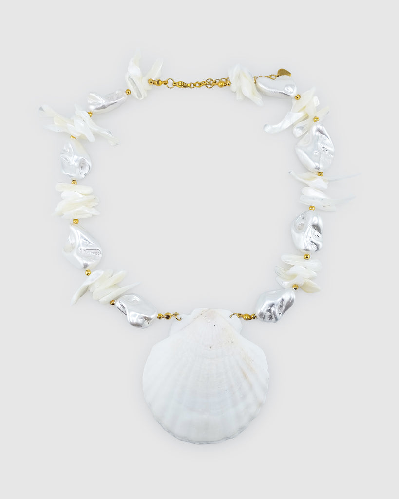 Embrace coastal elegance with our Calinda Necklace — a delicate blend of shells, pearls, and ocean-inspired charm. This beautiful necklace features a stunning white scallop shell pendant, reminiscent of sun-soaked beaches and salty sea breezes. Adorned with faux pearls along a fine chain, the Calinda Necklace is the perfect accessory to add a touch of seaside glamour to any outfit.