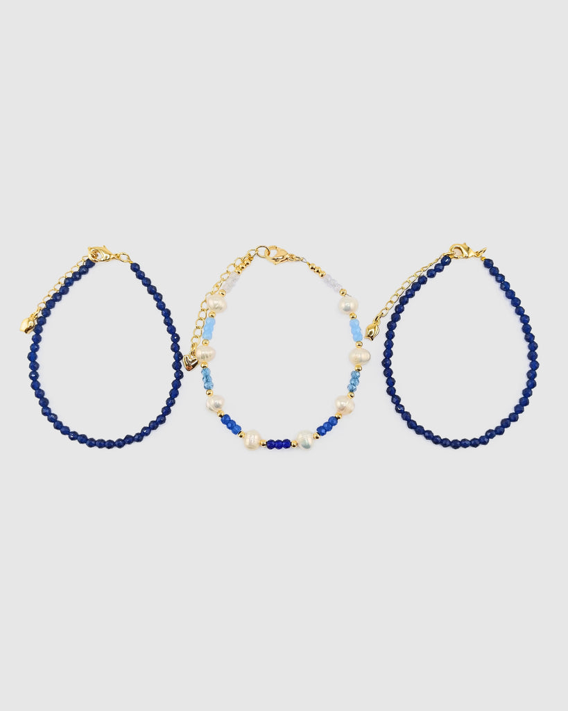 Add shimmer, texture, and effortless elegance to your wrist with the newest Crystal Beaded Bracelet Stack in Navy. Designed to elevate your everyday look, each bracelet features a radiant mix of faceted crystal beads and luminous freshwater pearls, creating the perfect balance of sparkle and sophistication.