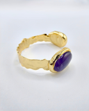 Add timeless elegance to your jewellery collection with the Miz Casa & Co Indira 18K Gold Plated Cuff Bracelet. Featuring a sleek, open middle design, this modern cuff is perfectly accented with two striking rose and amethyst natural gemstones on either side for a luxe, refined finish.