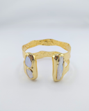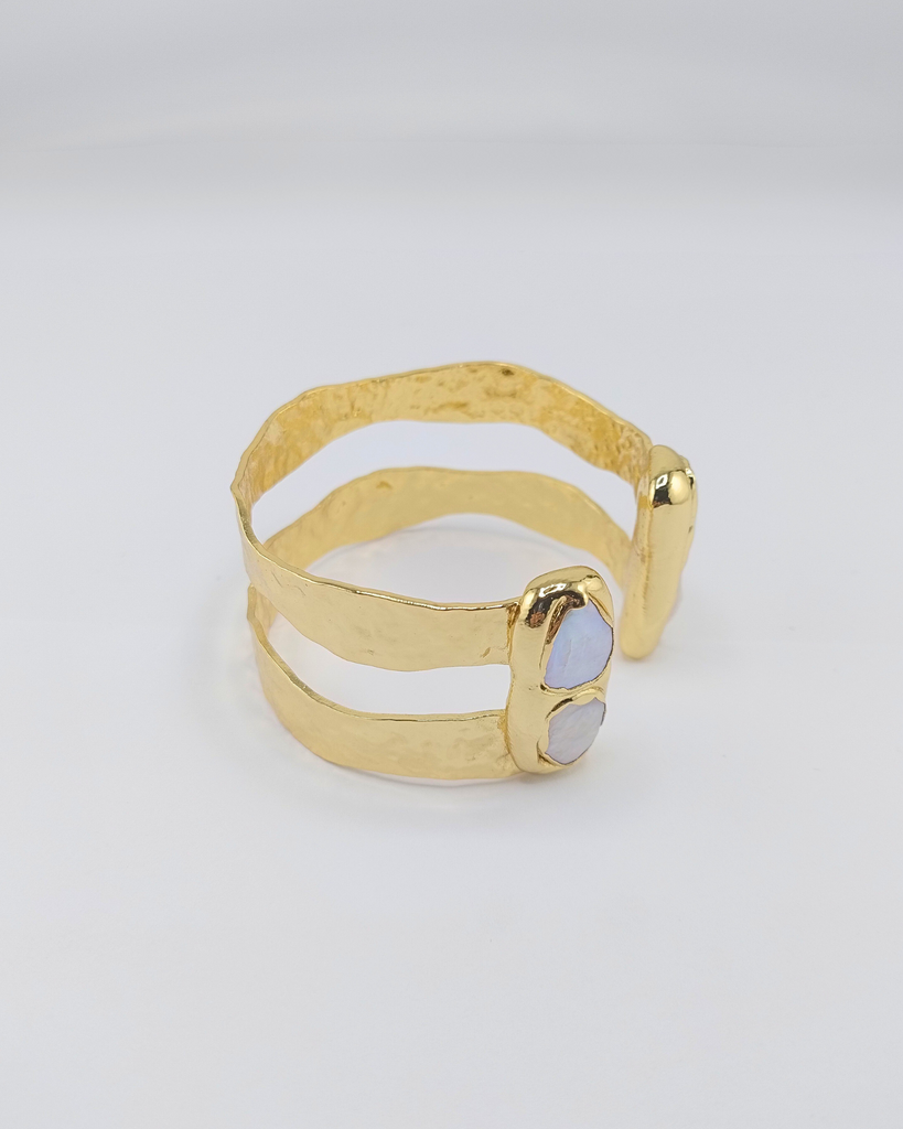 Designed to elevate any outfit, the Seren Cuff combines the beauty of organic pearls with the warmth of gold, creating a delicate yet bold statement piece. Its open design allows for easy wear and an adjustable fit, making it suitable for any wrist size.