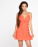 Our Hazel Dress in Rust is the perfect flippy little frock. This ultra flattering dress is made from a linen cotton blend and has an A line shape, side button detail and cross over straps. Wear with shell jewellery, a basket bag and sandals this season.